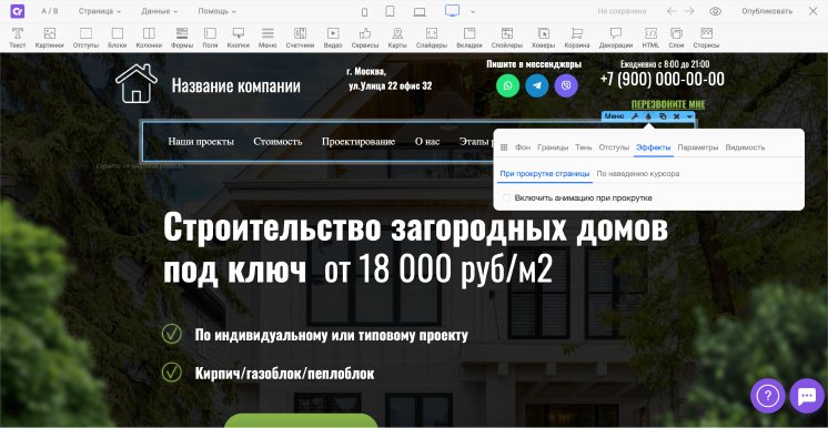 Сборка сайта — мы с помощью конструктора соберём подготовленный дизайн, настроим все формы, подключим домен, пропишем теги необходимый для индексации сайта в поисковых системах.